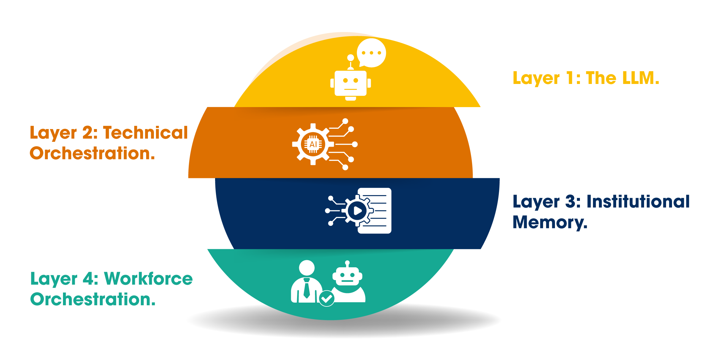 Layer 4: Workforce orchestration. Designing, managing, and scaling blended human-digital teams, with job descriptions, success criteria, managers, coaching, and measurement. It's the layer where the business value happens, and the one most companies haven't figured out yet.