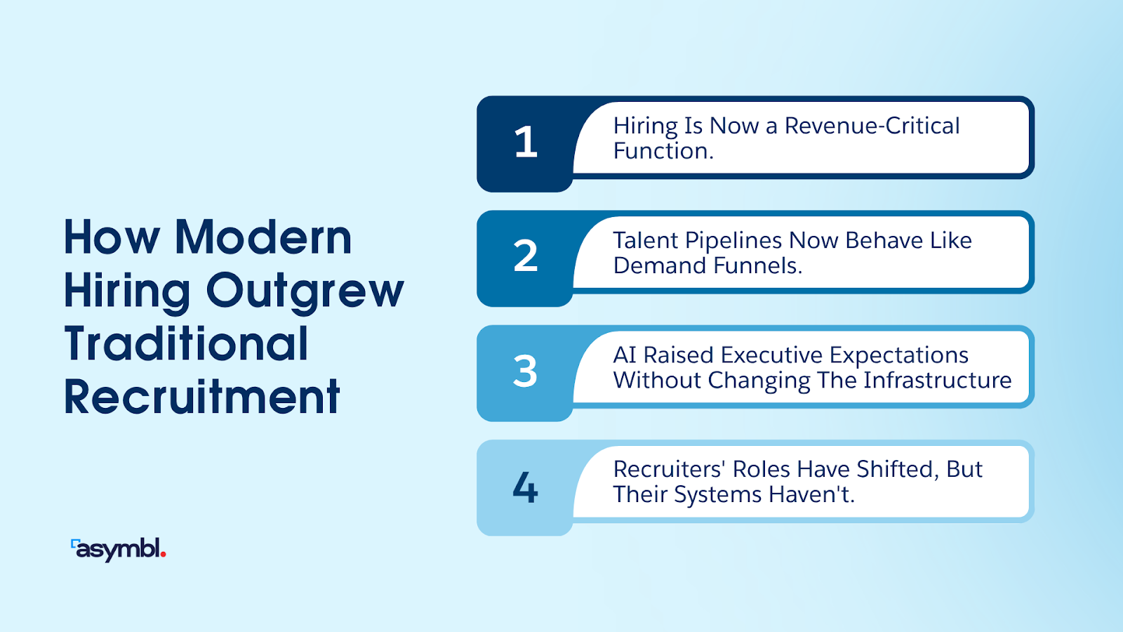 Recruiting has struggled to earn a strategic seat because it has lacked this level of predictability. At Asymbl, we have learned as Customer Zero that capacity is an engineered outcome.