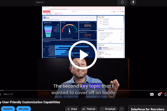 Dive into our video series for a detailed guide through best practices, practical tips and advanced strategies to leverage Salesforce’s powerful capabilities for staffing and recruiting. Whether you’re new to Salesforce or looking to boost your skills, these concise and actionable videos will help you accelerate placements, engage candidates and clients, and measure what matters.
