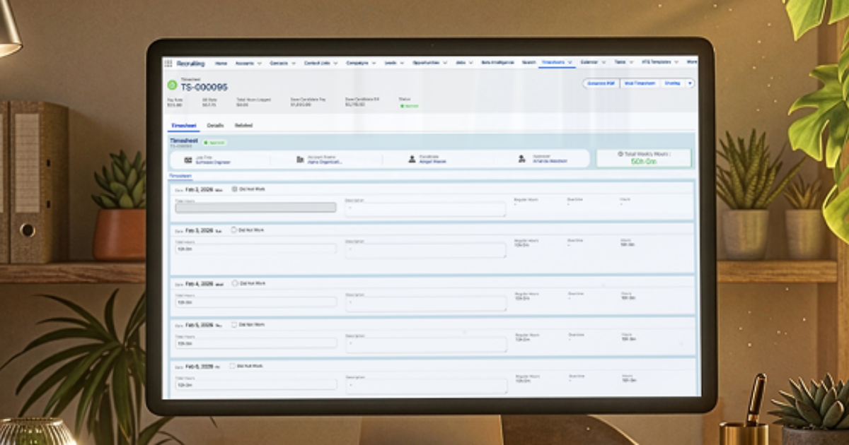 Asymbl Time automates the time entry, validation, and approvals that stand between every placement and its invoice. Because Time runs inside Salesforce alongside Recruiter Suite, billing cycles compress, payroll errors disappear, and your ops team focuses on revenue instead of reconciliation. In this demo, you will see how Time handles complex pay rules, complex rate management across locations and shifts, multi-state compliance, and bulk approvals automatically, with complete audit trails from time entry to invoice.